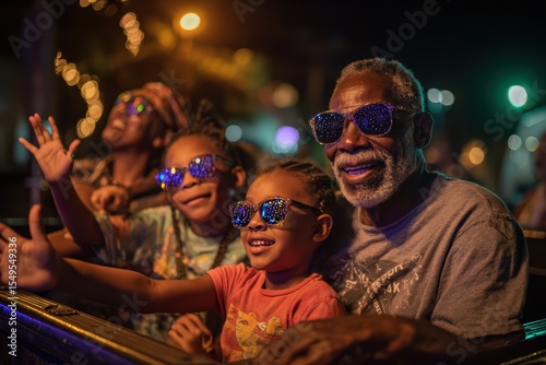 Fourth of July: Multigenerational Black Family Watches Fireworks from Pickup Truck Bed