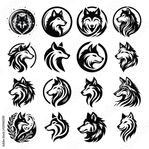 Fox head logo silhouette vector icon set clipart illustration & drawing