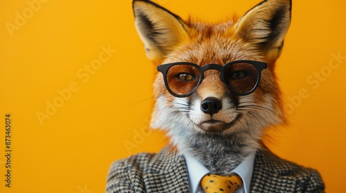 Fox in a suit and sunglasses, orange background