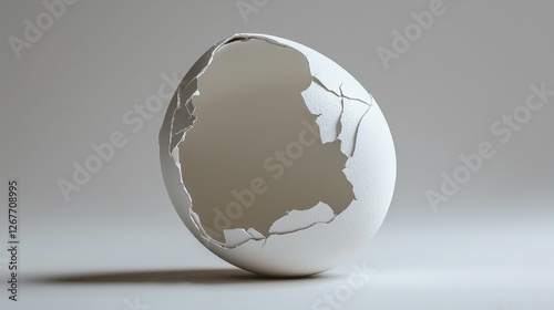 Fractured Eggshell Vulnerable Concept on Soft Gray Background Design