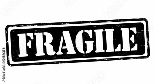 Fragile grunge rubber stamp, distressed warning label vector illustration.