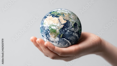Fragile Planet Earth, Showing Africa and Europe, Gently Cradled in a Caring Hand