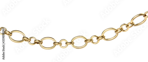 Fragment of a yellow metal chain on a white background. Isolated
