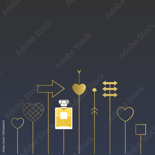 Fragrance with golden decorative elements. Vector illustration for holiday cards and shopping catalog.