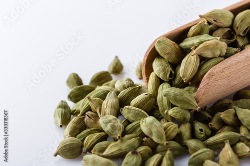 fragrant green cardamom on a white acrylic background