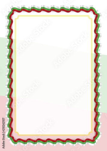 Frame and border of ribbon with Bulgaria flag, template elements for your certificate and diploma. Vector