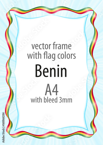 Frame and border of ribbon with the colors of the Benin flag