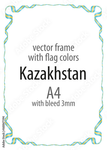 Frame and border of ribbon with the colors of the Kazakhstan flag