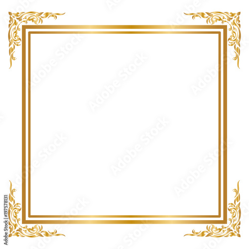 Frame and borders, Square frame, Golden frame, Vector illustration