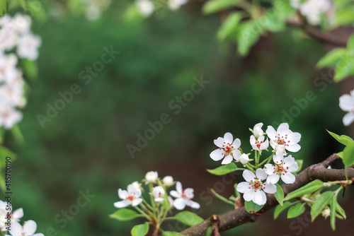 Frame from branches pear with white flowers, with copy space