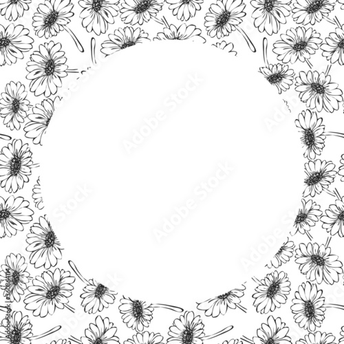 frame in monochrome colors, gerbera flowers, blooming background for cards, and various designs