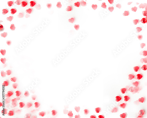 Frame of red hearts. Lots of red hearts on a white background with space for text. Copy space