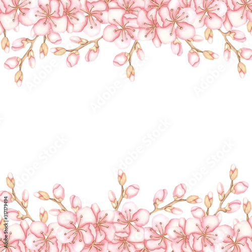 Frame of spring pink flowers