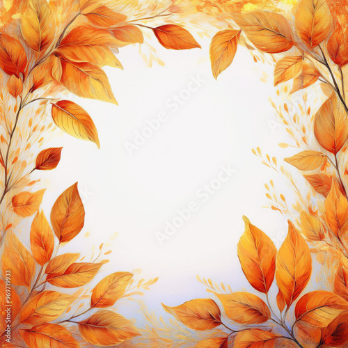 frame with orange leaves, in an absolute white background