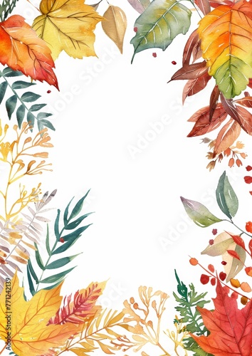 Frame with watercolor autumn leaves and berries.