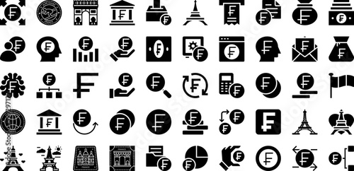 Franc Icon Set Isolated Silhouette Solid Icons With Icon, Vector, France, Sign, Symbol, Europe, Illustration Infographic Simple Vector Illustration