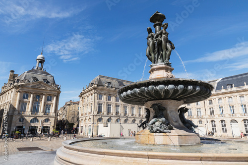 France, Gironde, Bordeaux, Low angle view of Fountain of Three Graces