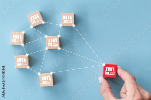 Franchise business concept, hand choose wood blog with franchise marketing.