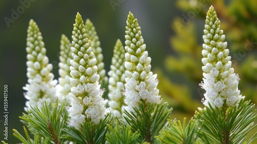 Frasier Fir Tree: Springtime New Growth with White Wildflowers in Nature
