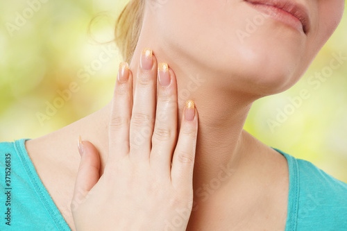 Frau hat Halsschmerzen