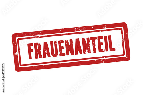 Frauenanteil (Proportion of women) - A red stamp, isolated on white background.