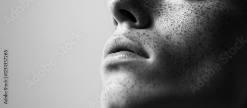 Freckled face, close-up, studio, neutral background, beauty
