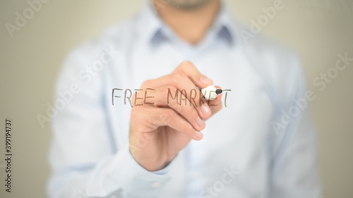 Free Market , man writing on transparent screen