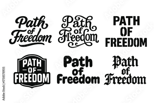 Freedom Lettering Variations. Path of freedom. Set lettering. harmonious lettering variations of the same emblematic concept, each with different artistic