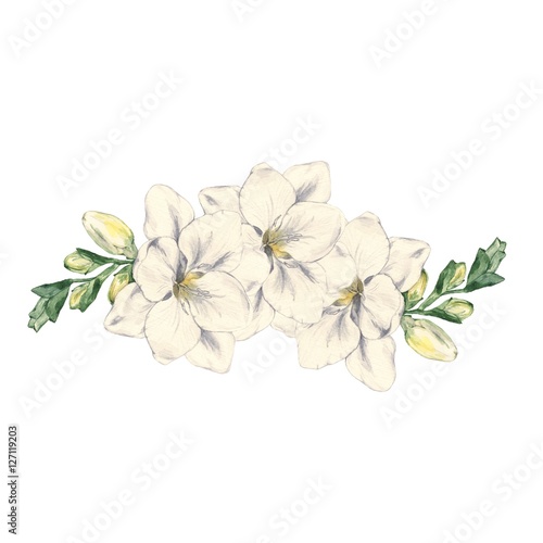Freesia flower . Watercolor painting. Hand drawing. Template for design of wedding cards, invitations, posters.