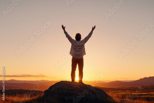 Freiheit und Erfolg in der Natur bei Sonnenuntergang