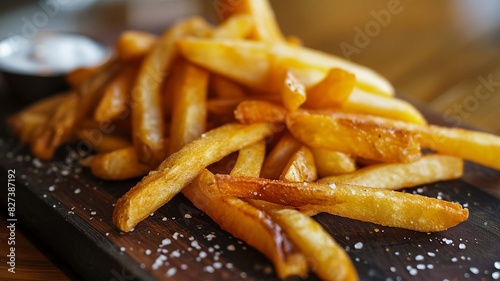 French fries in a paper bag on a wooden background. selective focus. Generative AI,