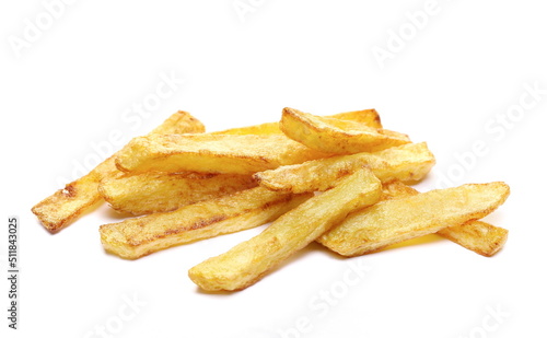 French fries pile, fried potato sticks isolated on white