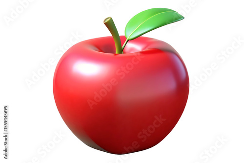 Fresh 3D Red Apple with Green Leaf, Realistic and Glossy