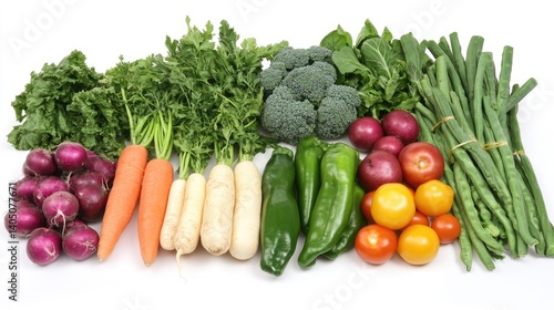 Fresh and Colorful Vegetables on White Background for Healthy Eating