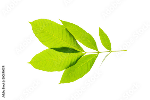 Fresh and green tropical and garden tree leaf texture. Green leaves isolated on a white background for world earth day concept.