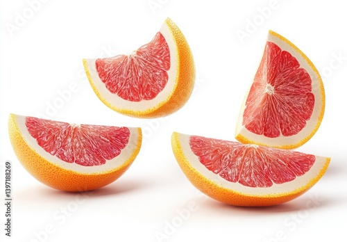 Fresh and Juicy Grapefruit Slices Arranged on White Background for Healthy Lifestyle and Nutrition Concepts