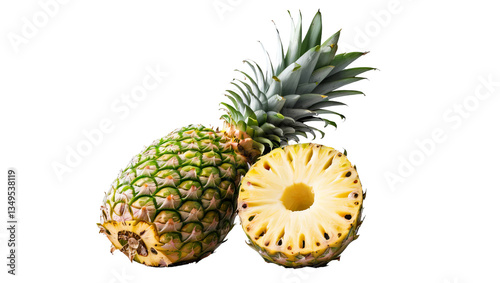 Fresh and Juicy Pineapple Cut in Half on Clear Background