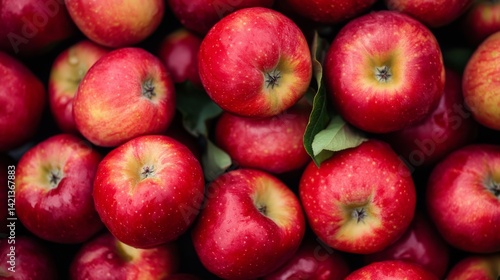 Fresh and juicy red apples on a wooden table with natural lighting, perfect for healthy eating, organic fruit, and seasonal food photography