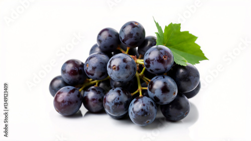 Fresh and Juicy violet Grapes with Green Leaves isolated on a white Background
