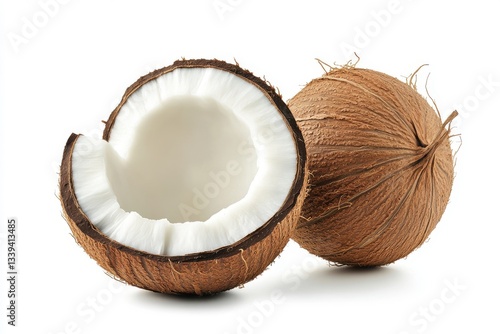 Fresh and vibrant coconut isolated on a white background showcasing its refreshing water and rich texture