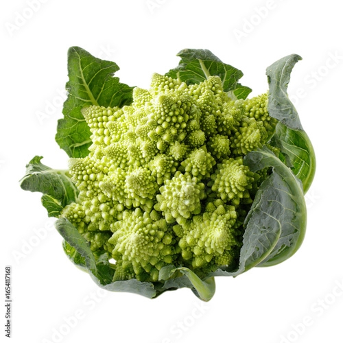Fresh and vibrant Romanesco broccoli with intricate on transparent background