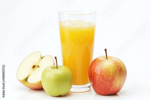 Fresh Apple Juice with Green and Red Apples on a White Background