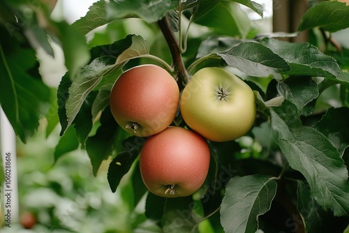 Fresh Apples Hanging From a Branch in a Lush Orchard During Late Summer Harvest Season