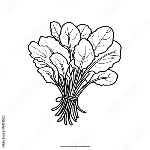Fresh arugula bunch illustration black and white vector on white background