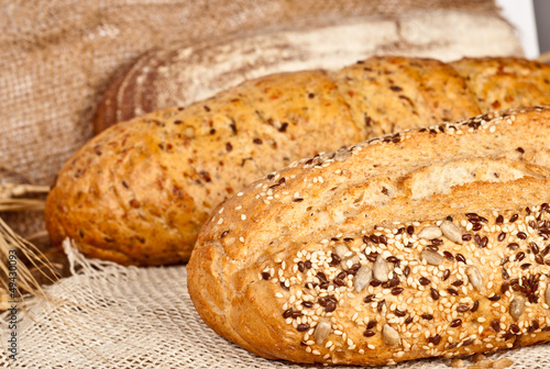 Fresh baked traditional bread and wheat