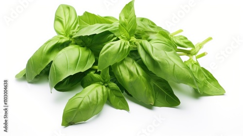 Fresh basil leaves arranged beautifully isolated on a clean white background for culinary and herbal themes.