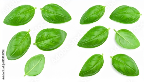 Fresh basil leaves isolated on white background with full depth of field for food styling or herbal concept
