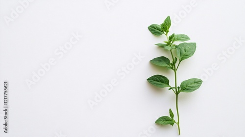 Fresh basil sprig with vibrant green leaves on a clean white background.