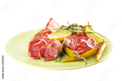 fresh beef medallion on green