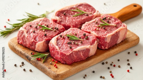 Fresh Beef Steaks Garnished with Seasoning and Herbs